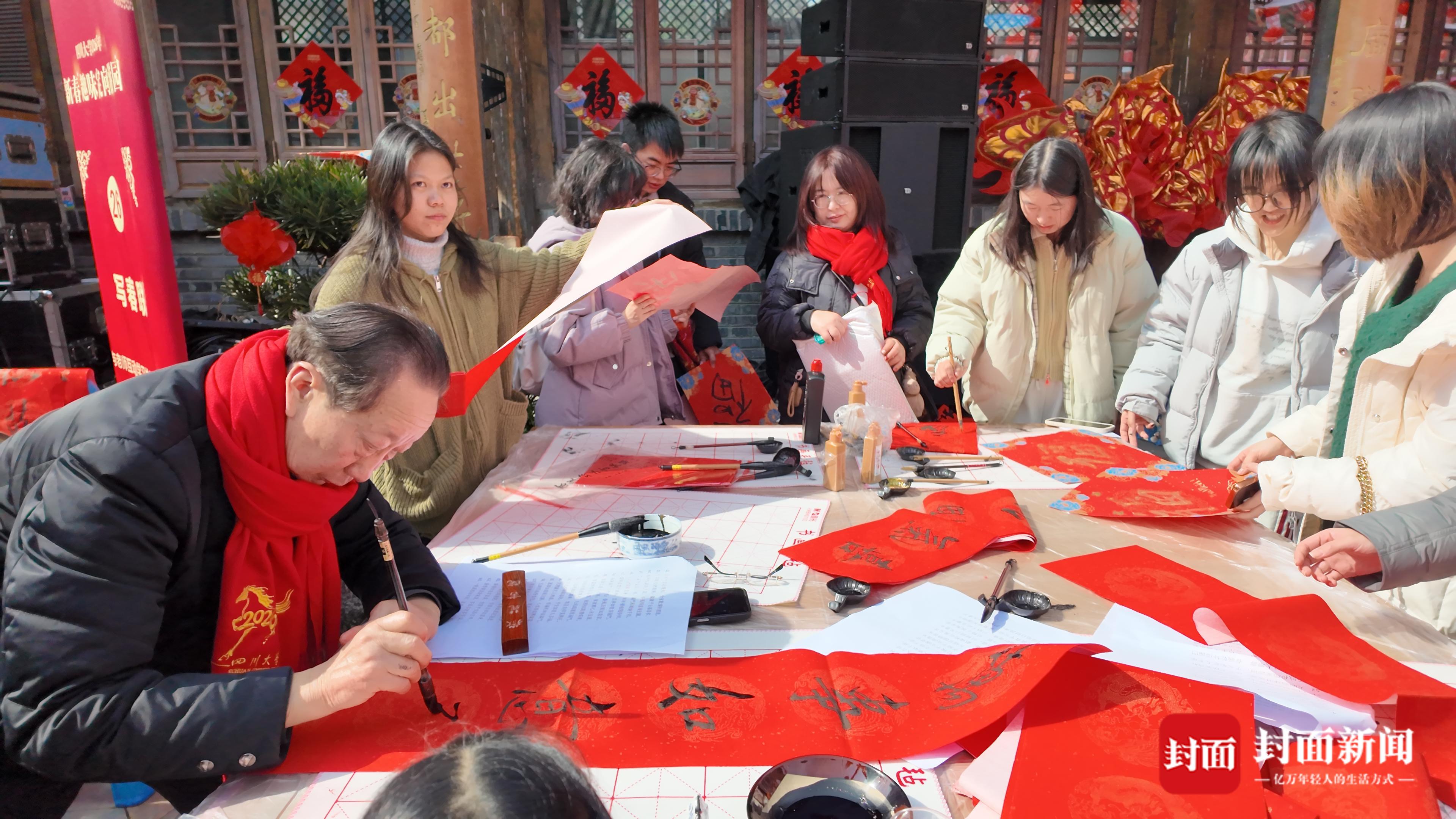 学生们在现场写春联
