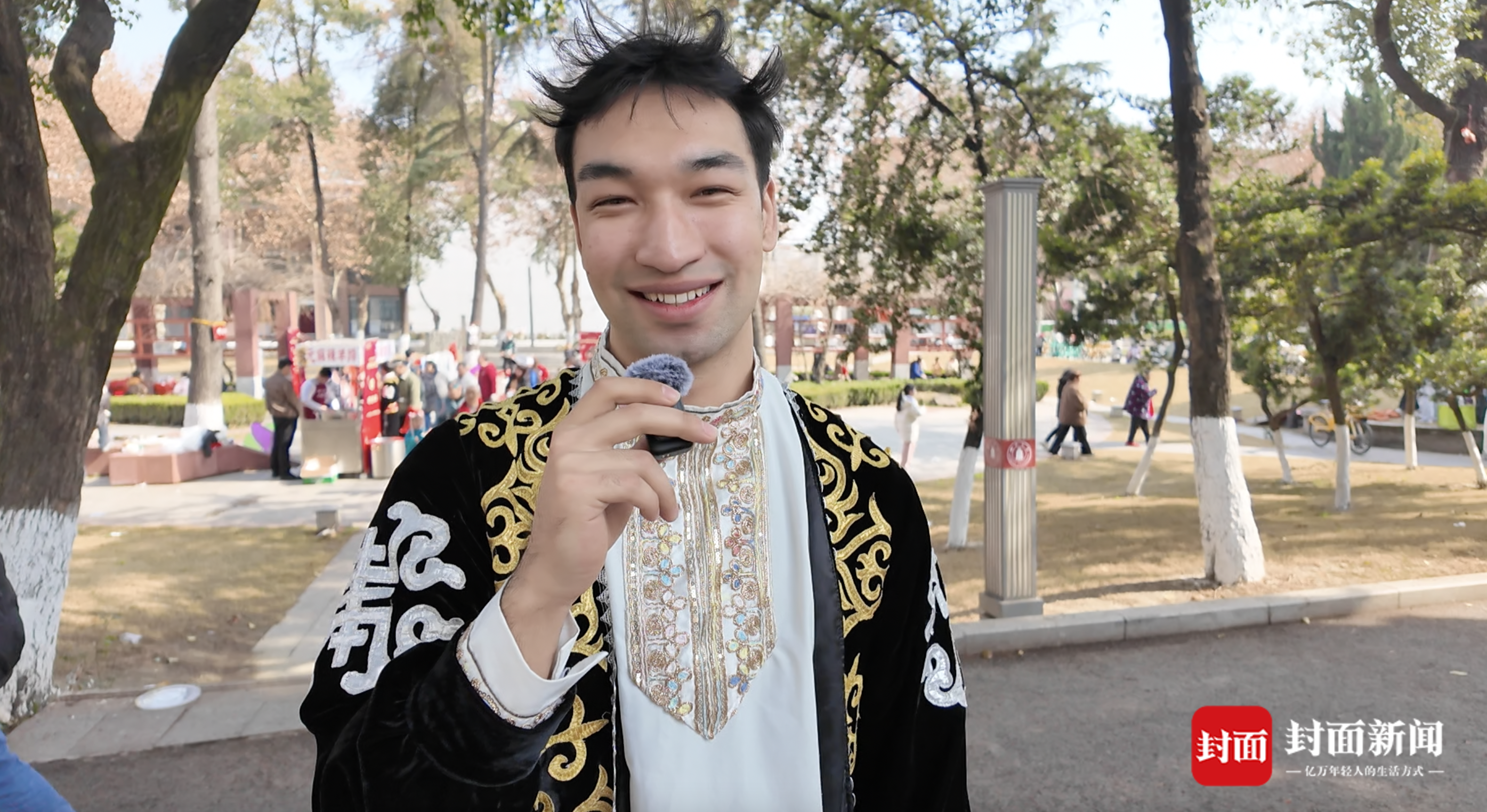 来自中国新疆的伊力亚尔因备战考研留校,在老师的邀请下首次参与活动,“感想就是活动规模好大,你看那边还有烤全羊,人太多了,我都没吃上。”