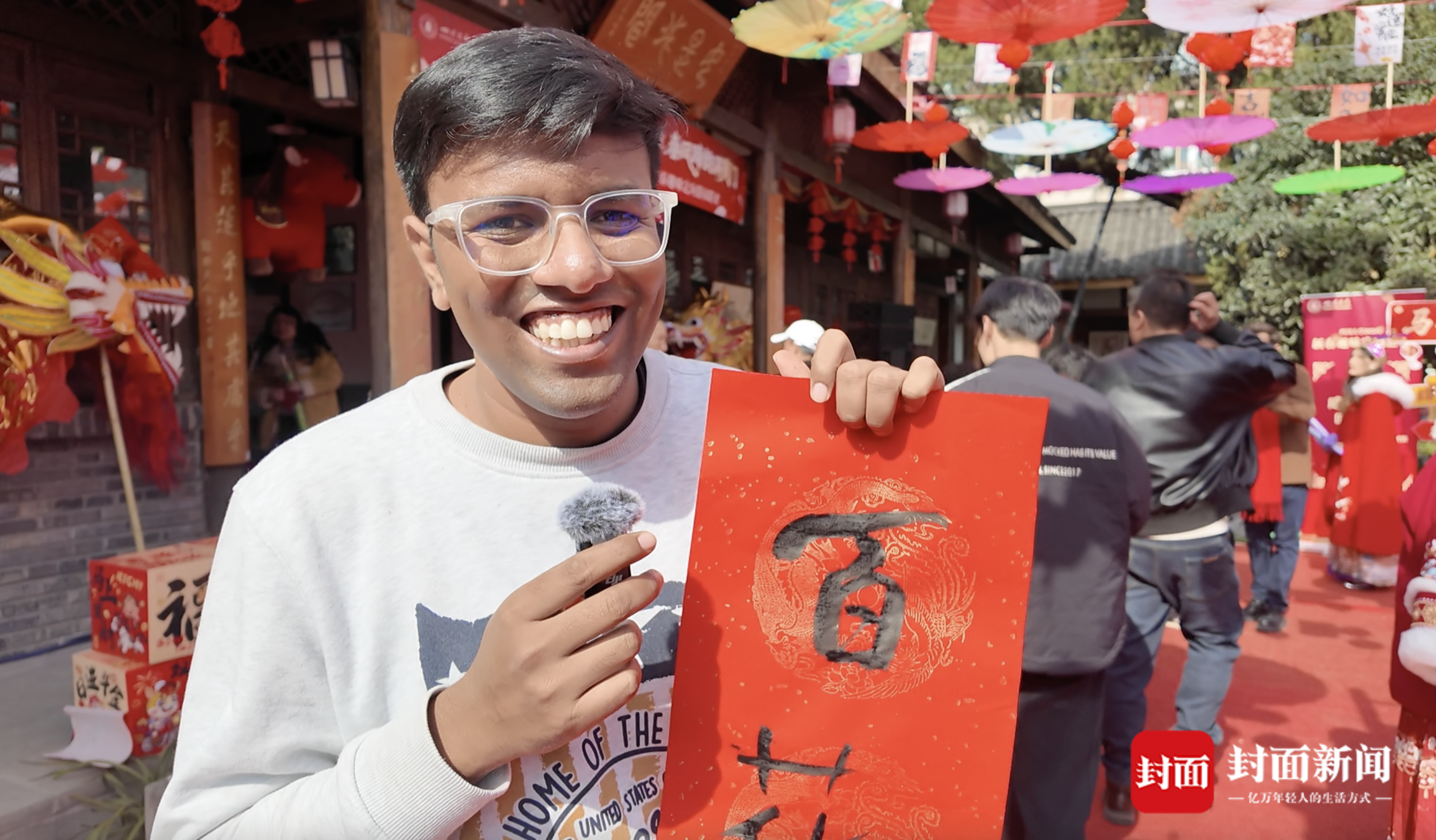 活动现场,来自印度的安良辰同学正认真书写着对联。作为一年级新生,这是他第一次在中国过春节,“第一个字是老师写的,下面是我写的。”安良辰腼腆地展示自己的作品,虽然有些笔画还不够熟练,但他表示这是一次难忘的体验,“来中国是我的梦想,我非常喜爱中国文化。寒假期间期望遍游中国各地,进一步探索中国文化的博大精深,并结识那些令人惊叹的中国人。”